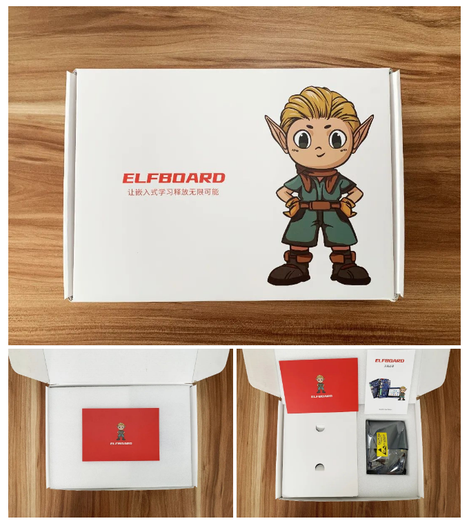 ElfBoard的產(chǎn)品包裝設(shè)計比較簡約,白色盒子的正面有一個非常醒目的精靈形象,官方對此含義的解釋為“精靈象征著自由、智慧和科技”。包裝的硬度還可以,只要不是特別暴力的運(yùn)輸,基本不用擔(dān)心板子在物流運(yùn)輸過程中被壓壞、破損。值得夸贊的是官網(wǎng)宣傳ELF 1和ELF 1S都是順豐包郵,不愧是大廠。