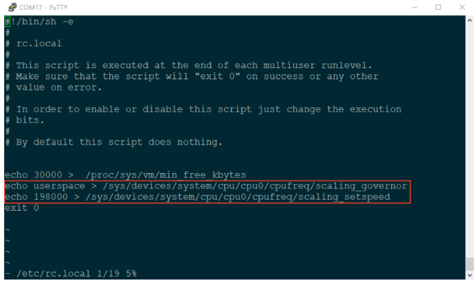 上述修改方法僅在終端中臨時(shí)生效,如果想要斷電不丟失,可以將修改頻率的命令寫進(jìn)開機(jī)自啟腳本中: