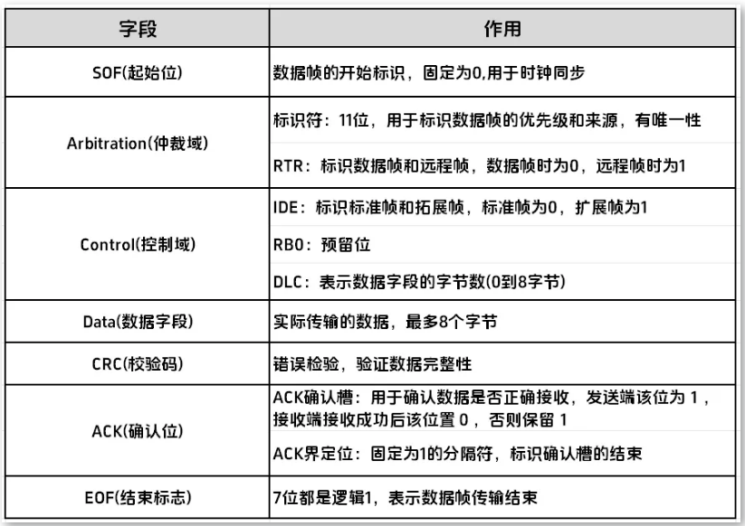 標(biāo)準(zhǔn)數(shù)據(jù)幀格式及字段組成如下: