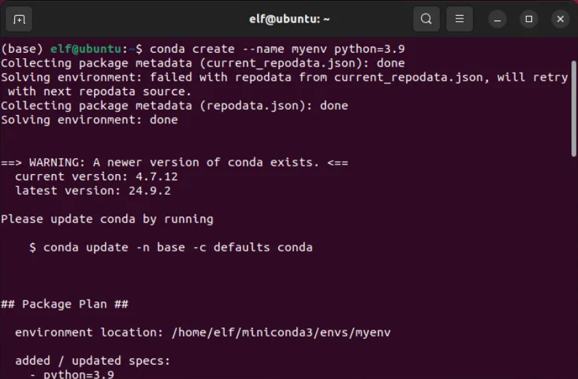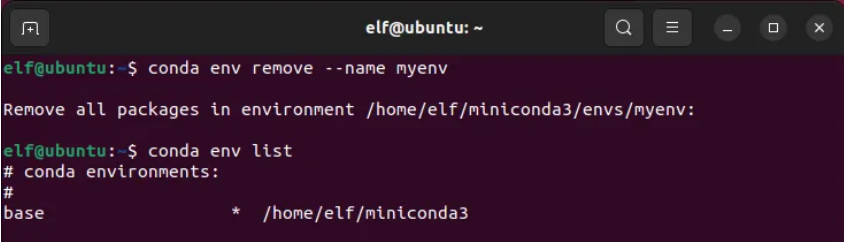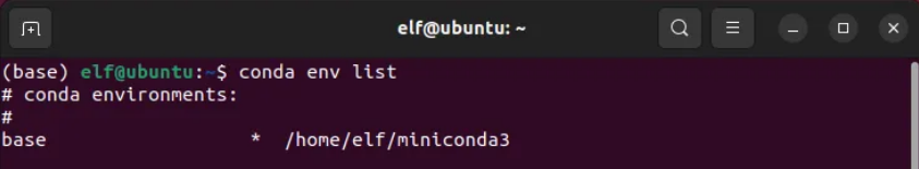 elf@ubuntu:~$?conda env list