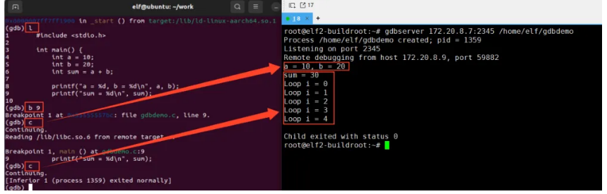 root@elf2-buildroot:~# gdbserver?172.20.8.7:2345?/home/elf/gdbdemo?Process?/home/elf/gdbdemo created; pid =?1314Listening?on?port?2345