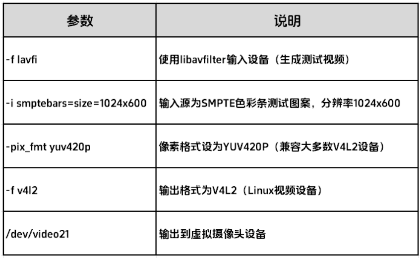 FFmpeg會持續(xù)生成SMPTE測試條視頻流,并寫入/dev/video21。