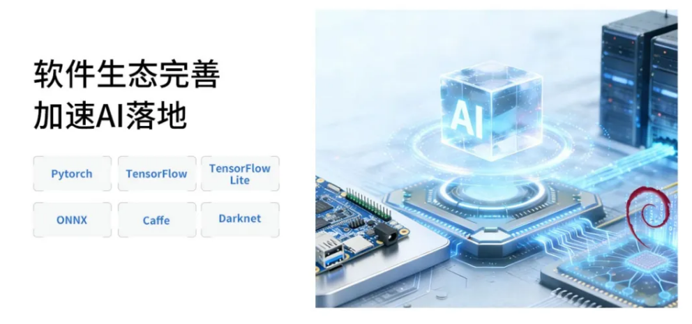 面向高校師生與個(gè)人學(xué)習(xí)者,ELF-RV1126B開(kāi)發(fā)板實(shí)現(xiàn)低門(mén)檻快速上手:不僅預(yù)裝適配完成的Debian 12系統(tǒng),更提供一站式BSP支持包,包含內(nèi)核源碼、文件系統(tǒng)、驅(qū)動(dòng)程序及RKNN工具鏈,省去繁瑣的環(huán)境配置環(huán)節(jié)。此外,開(kāi)發(fā)板全面兼容 Pytorch、TensorFlow、TensorFlow Lite、ONNX、Caffe、Darknet等主流深度學(xué)習(xí)框架的模型轉(zhuǎn)換,為不同技術(shù)路線的AI項(xiàng)目開(kāi)發(fā),提供多樣化工具支撐,輕松打通從理論學(xué)習(xí)到實(shí)踐落地的全流程。