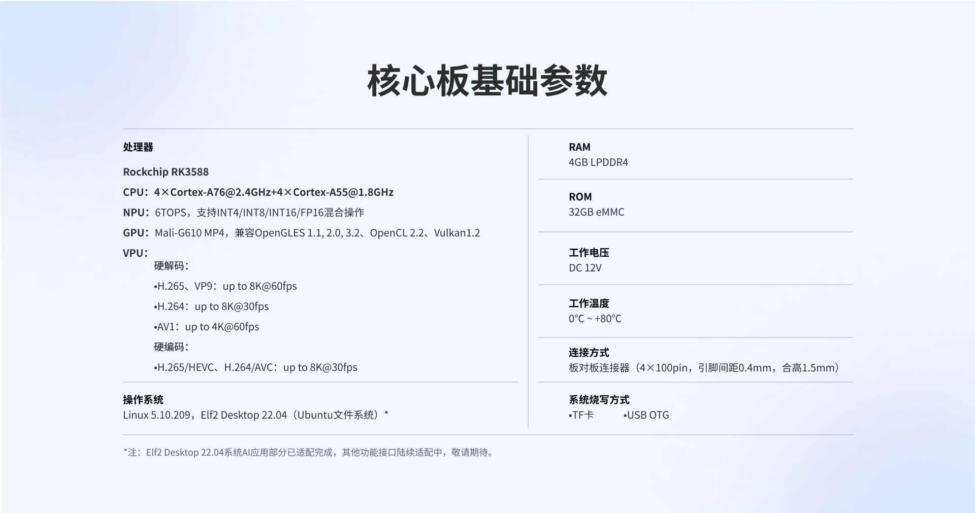OS:Linux 5.10.209,Elf2 Desktop 22.04(Ubuntu文件系統(tǒng))*