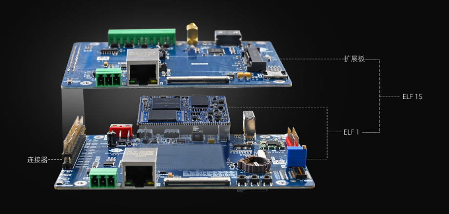 Elf 1S是在ELF 1的基礎(chǔ)上通過P2排針連接一塊擴展板(ELF S)后組成的升級版本,該擴展板上額外引出了RS232/485、4G、光線傳感器、網(wǎng)口、CAN 、以及LCD轉(zhuǎn)HDMI接口,若不使用擴展板的話,主控板排針對應(yīng)部分引腳可以另作它用,如復(fù)用成GPIO,或使用其接口連接其他模塊。