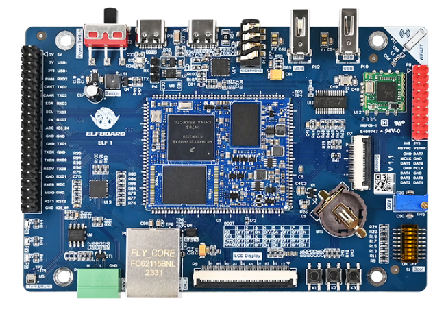 ELF 1 由核心板+底板構(gòu)成,底板集成CAN、WiFi&BT、Ethernet、USB、Camera、UART、音頻、USB、溫濕度傳感器等功能外設(shè),是一款適合初學(xué)者的嵌入式Linux開發(fā)板。