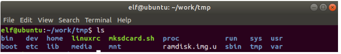 elf@ubuntu:~/work$?mkdir tmpelf@ubuntu:~/work$?cd tmp/elf@ubuntu:~/work/tmp$ sudo cpio -idv < ../ramdisk