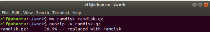 elf@ubuntu:~/work$?mv ramdisk ramdisk.gzelf@ubuntu:~/work$ gunzip -v ramdisk.gz