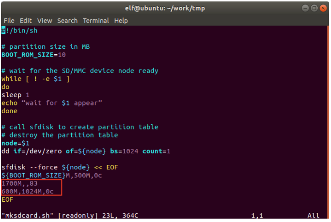 elf@ubuntu:~/work/tmp$ vi mksdcard.sh