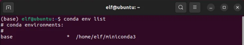 elf@ubuntu:~$?conda env list