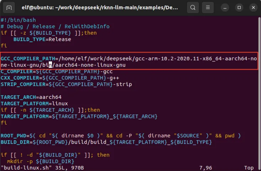(RKLLM-Toolkit-pyth3.10) elf@ubuntu:~/work/deepseek/rknn-llm-main/examples/DeepSeek-R1-Distill-Qwen-1.5B_Demo/deploy$?vi build-linux.sh