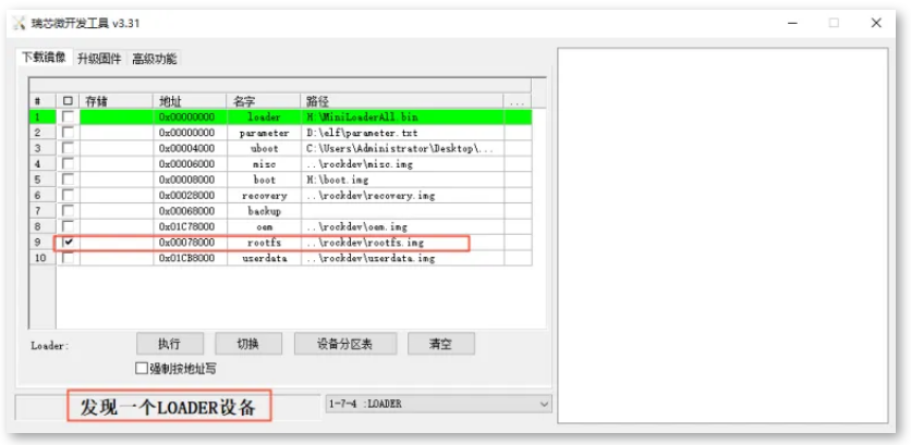 (注意: jammy-rootfs.img鏡像文件的燒錄起始地址應(yīng)設(shè)置為0x00078000。)