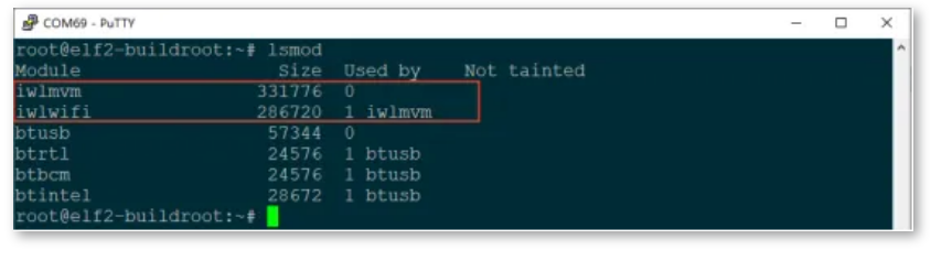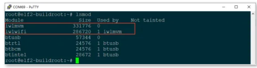 //重啟之后使用lsmod查看root@elf2-desktop:~Module ? ? ? ? ? ? ? ? ?Size ?Used?byiwlmvm ? ? ? ? ? ? ? ?331776??0iwlwifi ? ? ? ? ? ? ??286720??1?iwlmvmbtusb ? ? ? ? ? ? ? ? ?57344??0btrtl ? ? ? ? ? ? ? ? ?24576??1?btusbbtbcm ? ? ? ? ? ? ? ? ?24576??1?btusbbtintel ? ? ? ? ? ? ? ?28672??1?btusb