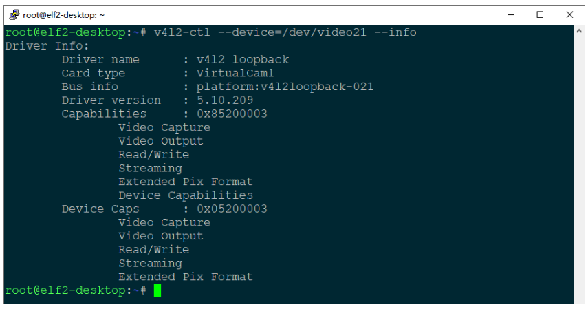 root@elf2-desktop:~# insmod v4l2loopback.ko devices=2?video_nr=21,22?card_label=VirtualCam1,VirtualCam2