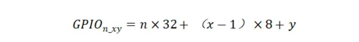 GPIO的命名規(guī)則為GPIOn_xy其中x的表現(xiàn)形式有ABCD四種。在GPIO計算編號的過程中,A對應1,B對應2,C對應3,D對應4。