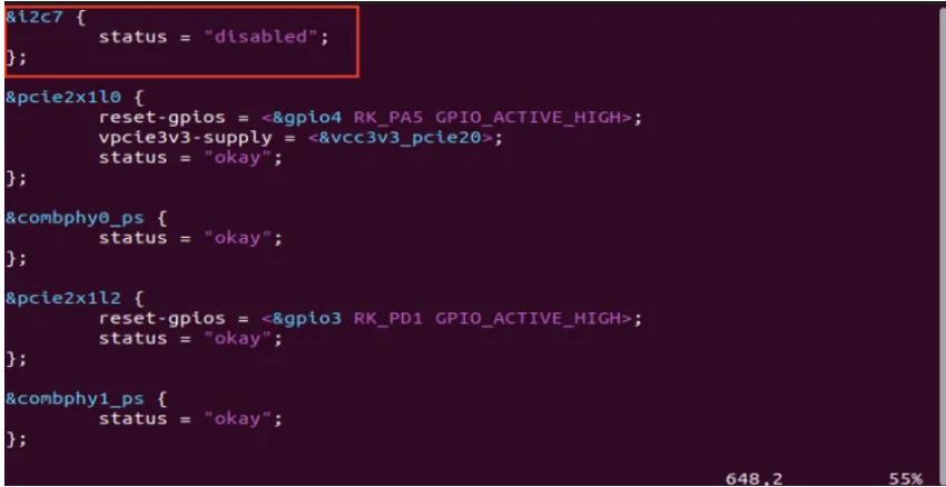打開以下文件 ,關閉i2c7節(jié)點引用。