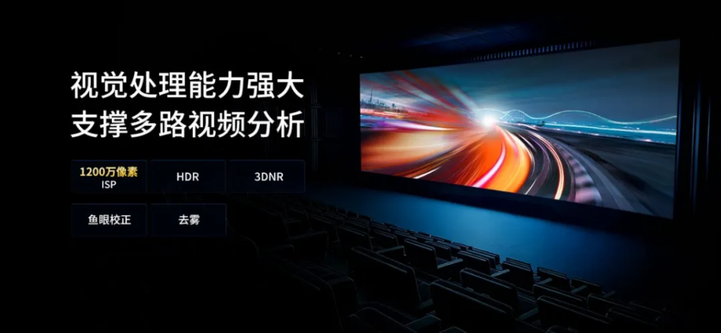 在圖像處理方面,開(kāi)發(fā)板搭載新一代1200萬(wàn)像素ISP,支持HDR、3DNR、魚(yú)眼校正及去霧等增強(qiáng)算法;同時(shí)提供雙路MIPI-CSI(每路4 lane)接口,可連接多路攝像頭,并支持H.265/H.264多流并發(fā)編碼,兼顧本地存儲(chǔ)與遠(yuǎn)程傳輸需求,是一套完整的輕量級(jí)AI視頻分析核心引擎。