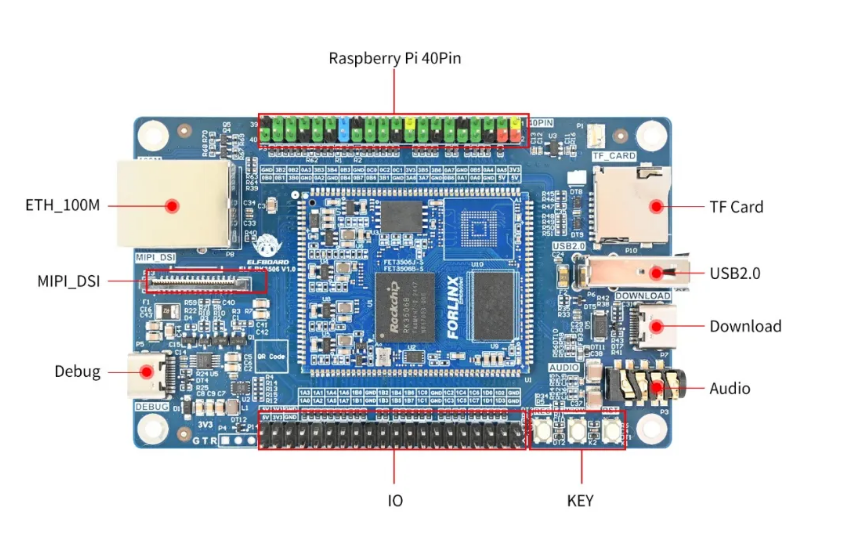 ELF-RK3506開發(fā)板僅105×65mm的緊湊尺寸,便于攜帶與實驗。雖然身材小巧,但它仍然提供了豐富的接口資源,包括USB、以太網(wǎng)等通信接口,以及MIPI、Audio等音視頻接口,此外,開發(fā)板上預(yù)留的40pin排針可兼容樹莓派的各種模塊,矩陣IO設(shè)計將98個功能信號靈活映射至32個引腳,破解傳統(tǒng)接口資源限制,可以充分滿足高校師生及個人學(xué)習(xí)者從基礎(chǔ)到進(jìn)階的學(xué)習(xí)需求。