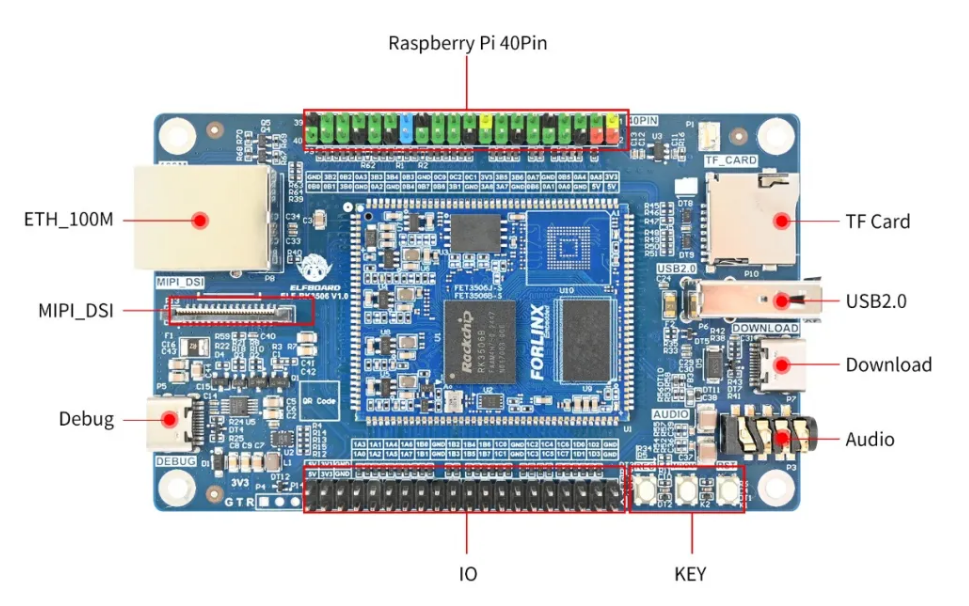 ELF-RK3506開發(fā)板的核心板與底板通過郵票孔方式連接,其核心板搭載基于ARM架構(gòu)的低功耗高性能處理器RK3506。該處理器集成3核 Cortex-A7配備獨(dú)立的NEON協(xié)處理器可廣泛適用于計(jì)算機(jī)、手機(jī)、個(gè) 人移動(dòng)互聯(lián)網(wǎng)以及數(shù)字多媒體設(shè)備。飛凌嵌入式推出這款板子顯然是吸引單片機(jī)開發(fā)者進(jìn)入Linux開發(fā)領(lǐng)域。
