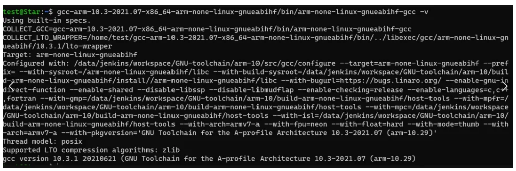 gcc-arm-10.3-2021.07-x86_64-arm-none-linux-gnueabihf/bin/arm-none-linux-gnueabihf-gcc -v
