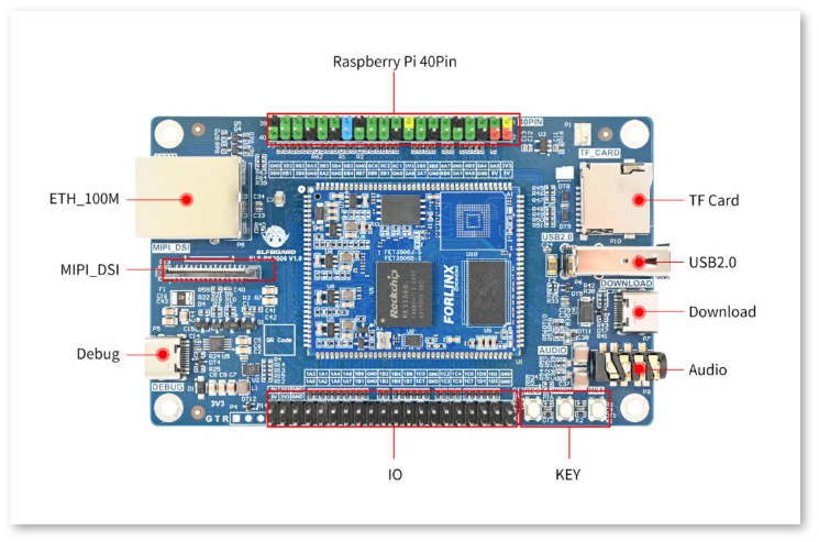 在接口資源方面,ELF 2開發(fā)板提供了豐富的選項,包括多個USB、PCIe、UART等通信接口,以及HDMI、DP等音視頻接口。此外,它還支持多種擴(kuò)展模塊,適配了顯示屏、攝像頭、光照傳感器、運(yùn)動傳感器、語音控制等豐富的選配模塊。而且在開發(fā)板上預(yù)留的40pin排針可兼容樹莓派的各種模塊,為嵌入式項目開發(fā)提供了無限可能。